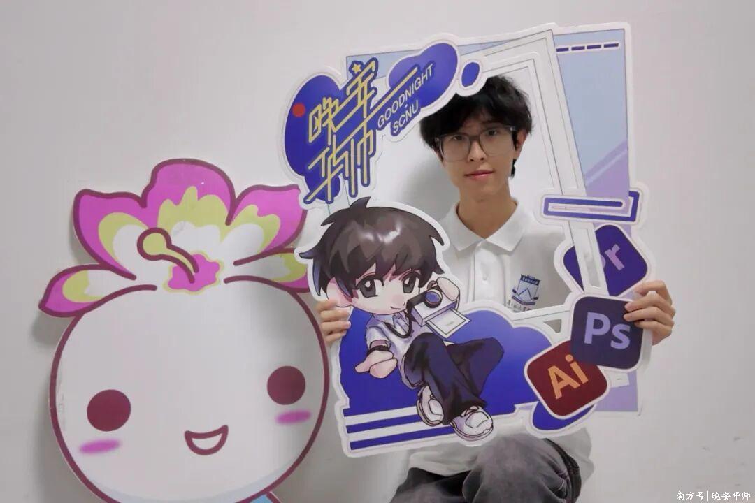 颜心远接到的第一个任务是2024年的“新年第一推”。一开始,他对能够参与重要的设计感到惊喜而激动。但他不曾预料,那些反复打磨的版面、多次调整的海报,会成为他大学生活中最深刻的印记,“我们虽不常身处新闻一线,但依然为每一篇推送、每一个宣传作品全力以赴。”在设计部,跟许多成员并肩前行,颜心远收获良多,不仅提升了审美、掌握了技能,更探索出自己对宣传工作的认识,“在这里,我学会了用视觉说话”。尽管是工科生,他却在这里感受到人文的温度与社科的力量。“新闻社的故事远不止于屏幕之内。我们始终奔赴在下一个‘在场’,去感知、去呈现,让每一句‘晚安华师’,都带着温度,也带着力量。”