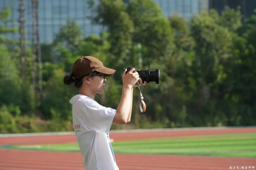 对黄文莎而言,两年前加入新闻社视觉部,是一场以热爱为起点的“冒险”。彼时,她空有对摄影的满腔热情,却缺乏实战经验,甚至连一台属于自己的相机都没有。但这并未阻挡她的脚步。凭借一股不服输的劲头,黄文莎从理论学起,在反复补拍中摸索,在观摩例图中积累,在虚心请教中领悟,不断提升审美、精进技术,从摄影“小白”成长为能独当一面的视觉部干部。视觉部的工作远非想象中轻松:与各部门协同作战、频繁协调场地、随时回应老师信息——这种“随时随地待命”的状态,已成为她生活的常态。也正是在这样的高压下,她练就了既专业又不失亲和力的沟通本领。